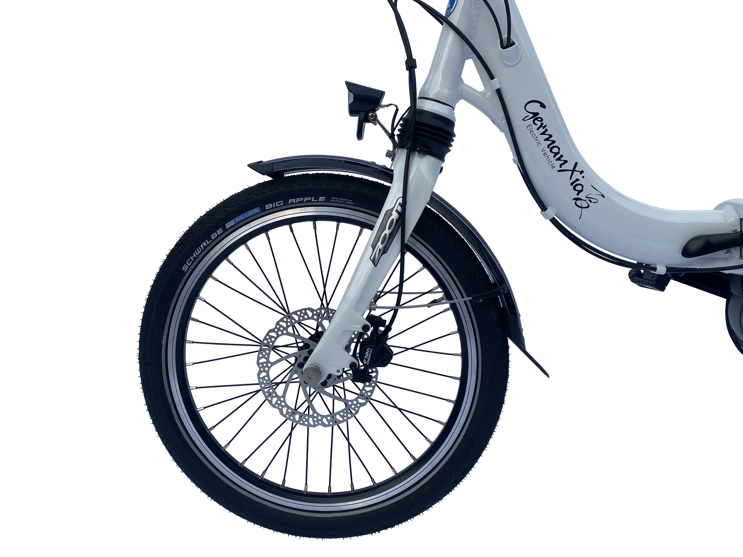 Der tiefe Gewichtsschwerpunkt stabilisiert das Fahrrad in sich selber. Kombiniert mit den breiten SCHWALBE PickUp Reifen haben Sie exzellenten Halt und behalten auch in Gefahrsituationen immer die Kontrolle. Unser Mobilemaster ist mit einer Gabelfederung & Sattelfederung ausgestattet. Unebenheiten werden mühelos ausgeglichen.